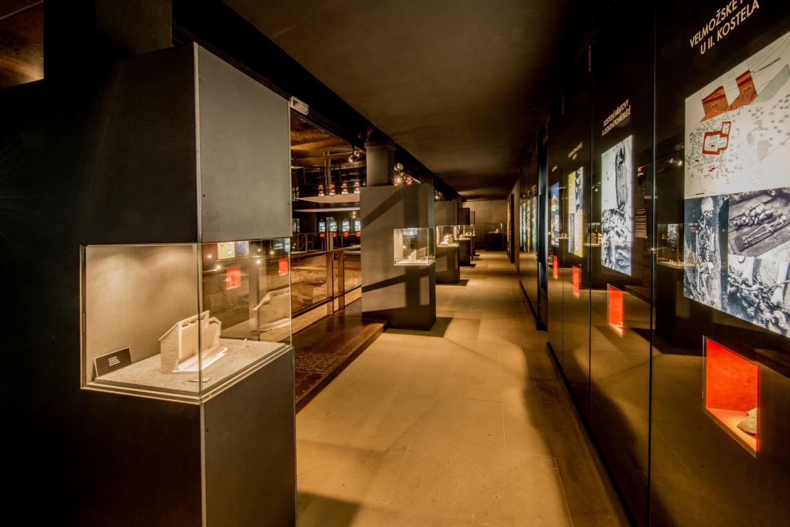 W głównym budynku znajdziesz centrum dla zwiedzających z pamiątkami, pierwszymi eksponatami oraz modelem ściennym wykonanym wyłącznie w oparciu o badania archeologiczne. Z 30-metrowej wieży widokowej zobaczysz nie tylko teren grodu z zachowanymi elementami, ale również szczyty Białych Karpat czy Pálavy. Wzniesiona na wysokości 160 m n.p.m. jest oficjalnie najniżej położoną wieżą widokową w Czechach.