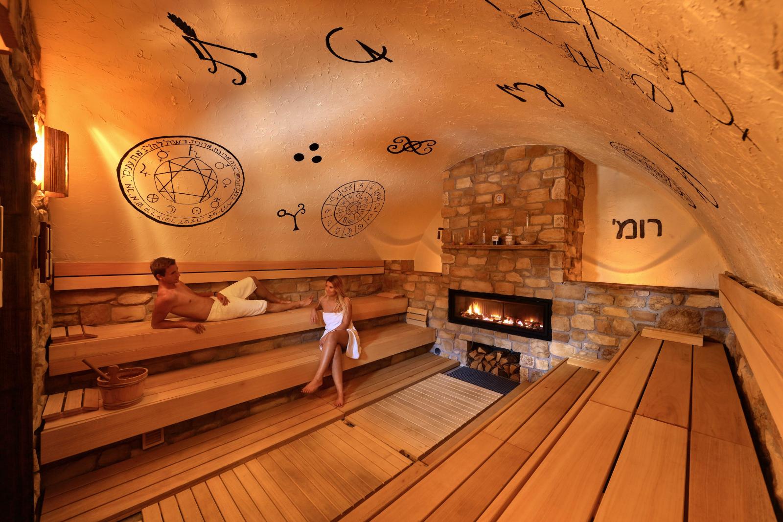 Spośród 12 rodzajów wyjątkowych saun wybierz tę, która najbardziej Ci odpowiada, i oddaj się błogiemu relaksowi. Jedna sauna imituje prehistoryczną jaskinię, inna piwnicę winną, a z jeszcze innej podziwiać można panoramiczny widok na jeziorko. Po wizycie w saunie można odpocząć w środku przy kominku lub na zewnątrz, wyciągając się na łące.