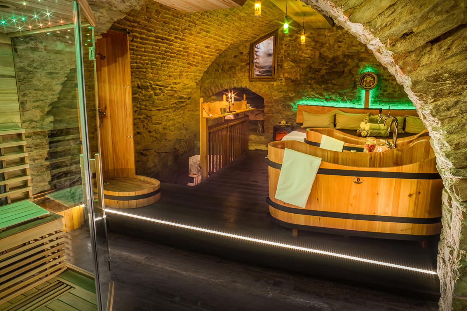 W znojemskich podziemiach kryją się nie tylko adrenalinowe atrakcje, lecz również oryginalne miejsce relaksu. W przytulnym podziemnym pomieszczeniu, w którym będziesz miał całkowitą prywatność, czeka na Ciebie drewniana kadź z przygotowaną kąpielą. Ciepła woda wzbogacona jest naturalnymi wyciągami z surowców, z których warzy się piwo. Działają stymulująco na organizm ludzki, łagodzą objawy egzemy i trądziku oraz skutecznie niwelują oznaki stresu i zmęczenia.